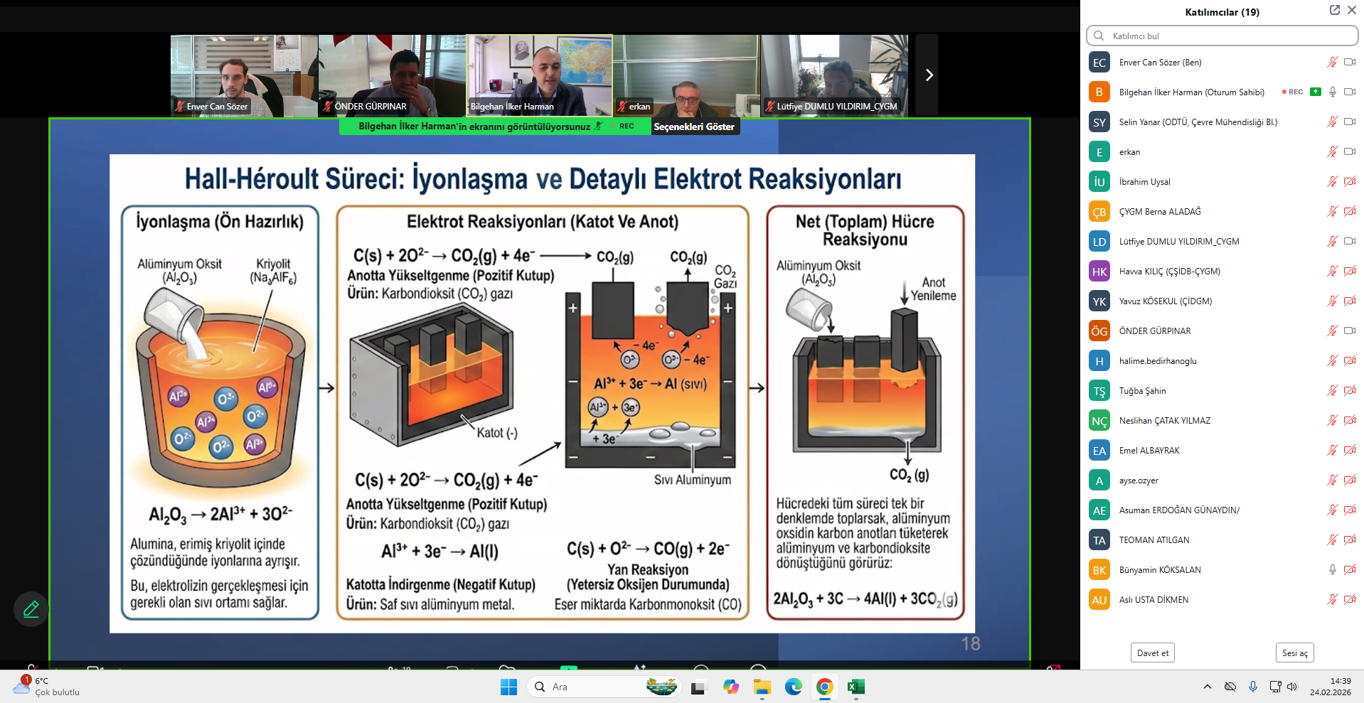 24 Şubat 2026 Salı günü gerçekleştirilen ikinci eğitim, Alüminyum Oksit ve Alüminyum İzabesi ve Alüminyum Ürünlerin üretimi sektörüne yönelik olarak Prof. Dr. Bilgehan İlker HARMAN tarafından verilmiştir. Eğitimde sektörel üretim süreçleri, su kullanımı ve atıksu yönetimi konuları ele alınmış; MET ve MET-İES uygulamalarına ilişkin detaylı bilgilendirme yapılmıştır.
